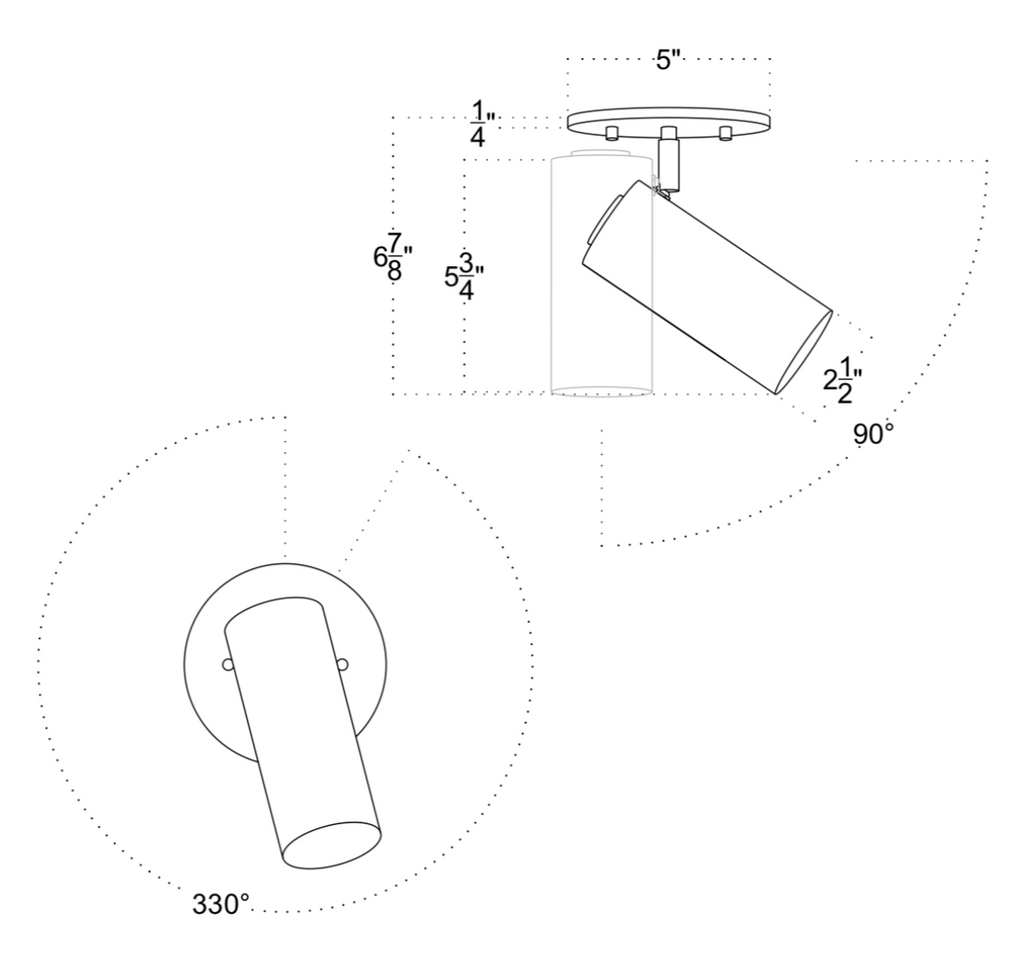 Standard 5" (shown): 5" diameter, 1/4” depth. Includes universal hardwire bracket.