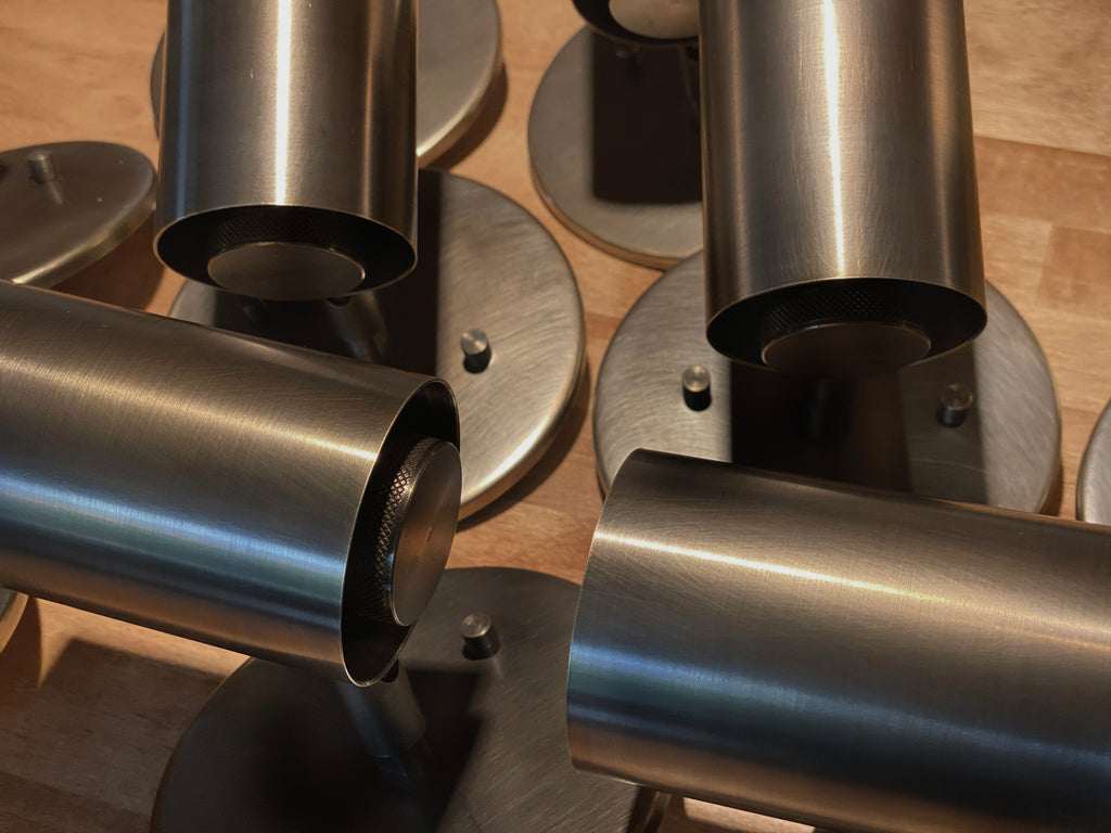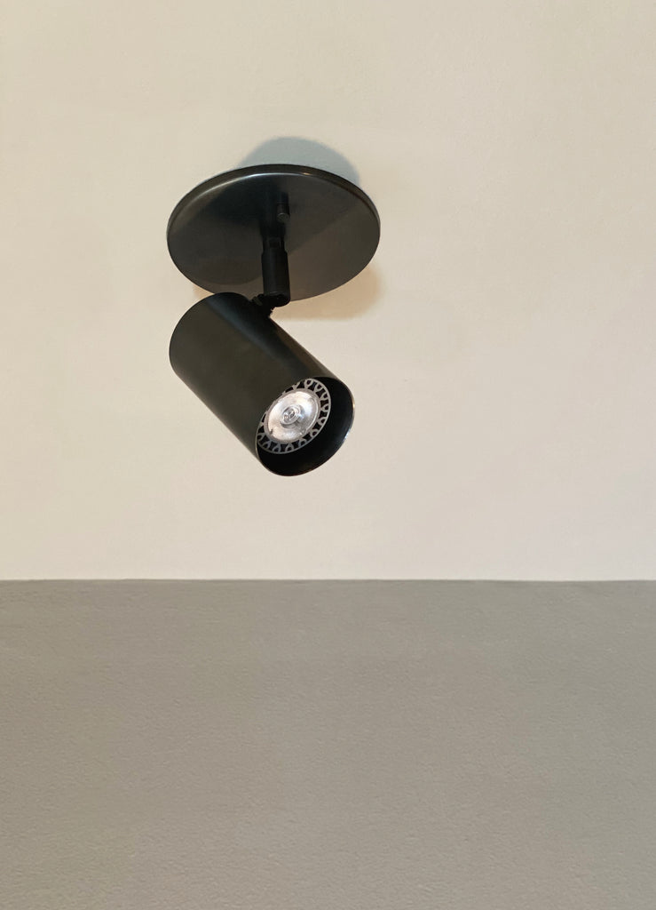 Designed and handmade to order in our Texas studio. Features heavy gauge solid brass construction. Shade head adjust to true vertical and horizontal positions and turns 330 degrees on axis. Excellent directional ceiling monopoint for flat or vaulted ceilings, this fixture is a great alternative to recessed can lights and perfect for providing general or task lighting throughout any home or business.