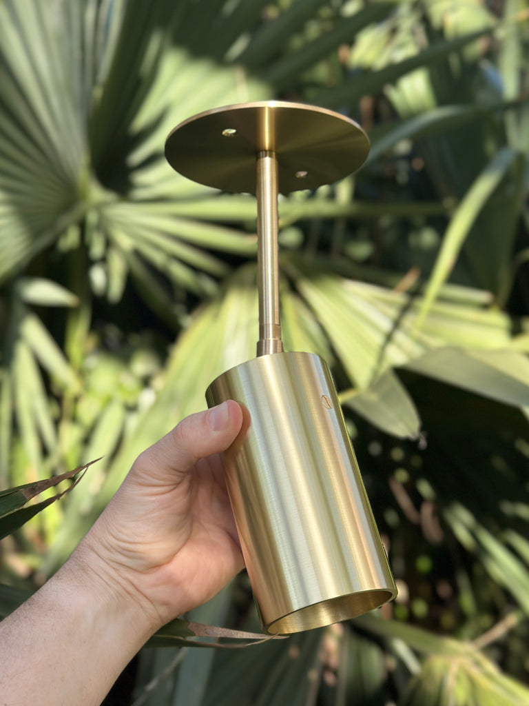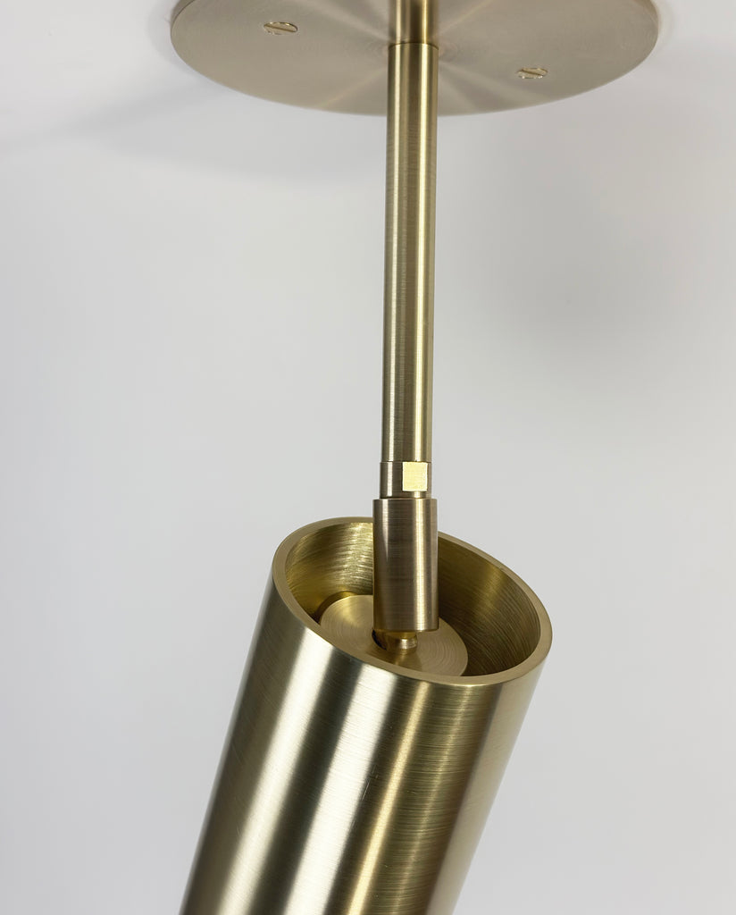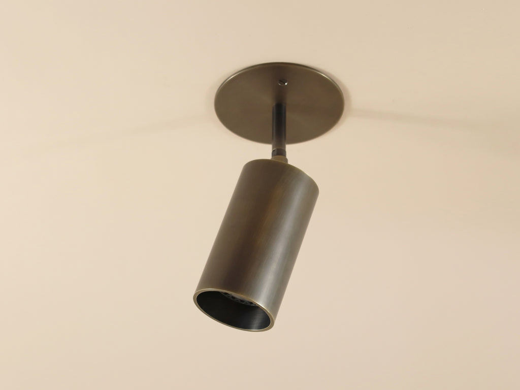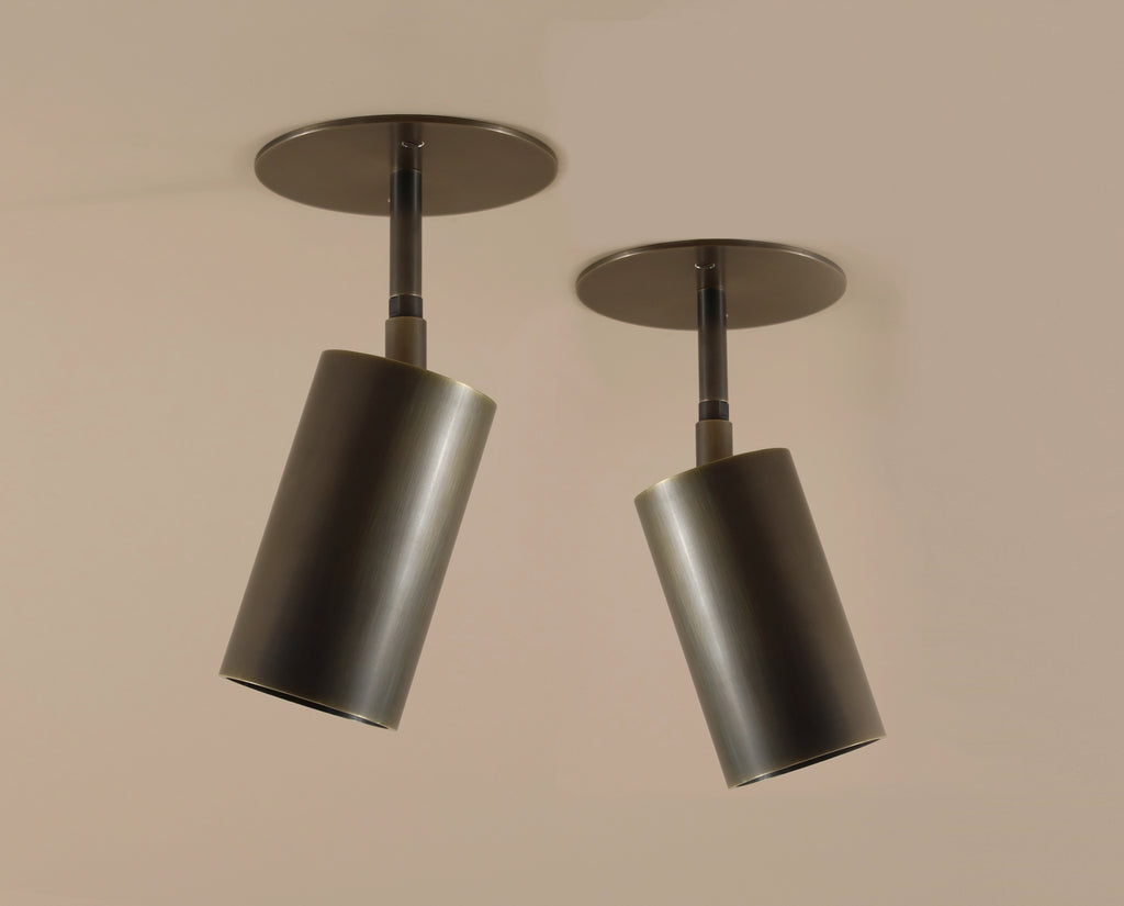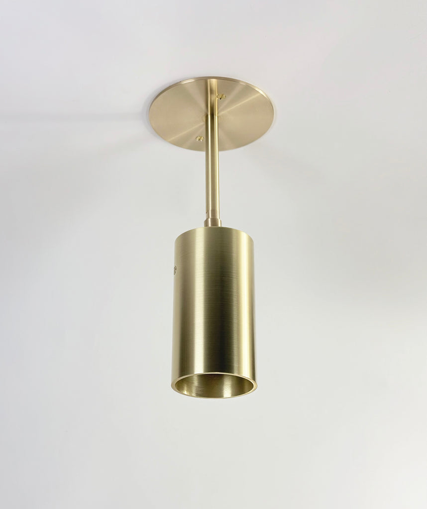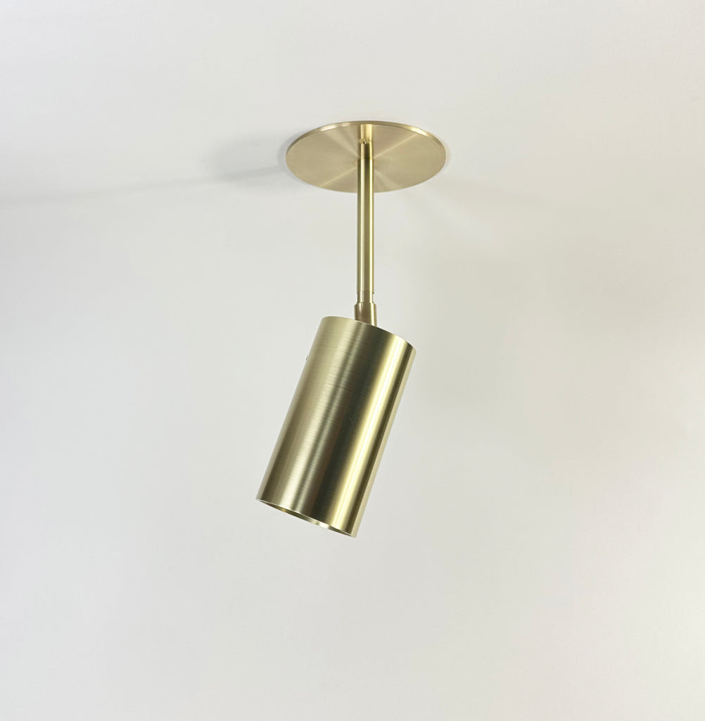 Designed and handmade to order in our Texas studio. Boasting an ultra-thick inset cylinder head and a low-profile slab backplate with concealed inset mounting hardware, this monopoint embodies minimalist elegance. It serves as a premium alternative to traditional recessed can or track lighting, delivering adaptable general and task lighting suitable for both residential and commercial environments. Comes with various drop rod lengths. Available in 2" (primary photo), 4", 12” and 24”. Custom sizing available.