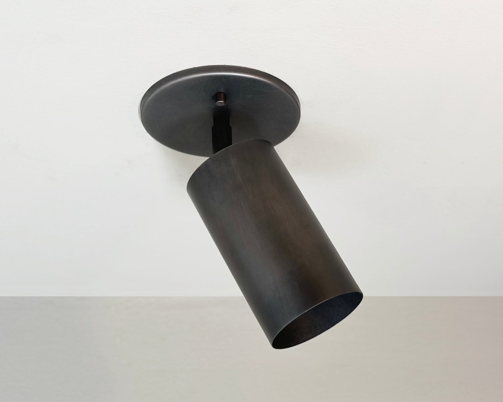 Designed and handmade to order in our Texas studio. Downlight features heavy gauge solid steel construction. Excellent monopoint for flat or vaulted ceilings.
