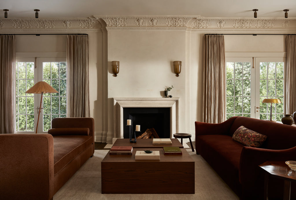 Install photos - living room w/ cream walls - courtesy of Studio Jake Arnold.