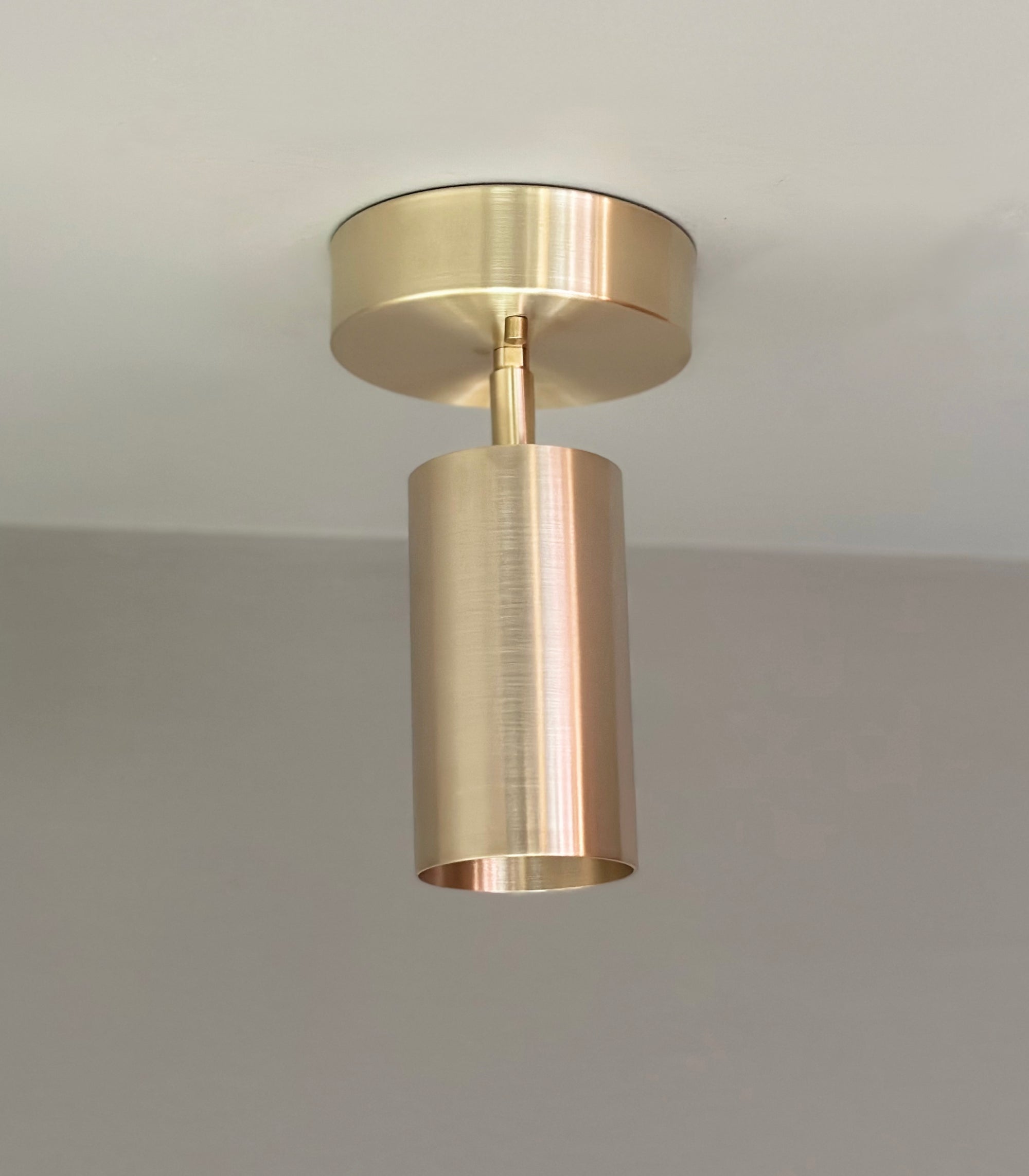 Part of the Highland Series cylinder lights which are heavy machined brass spotlights that combine minimalist design with versatility, making them excellent for both general and task lighting in residential and commercial spaces. The larger shades accommodate higher output bulbs for increased light when needed.