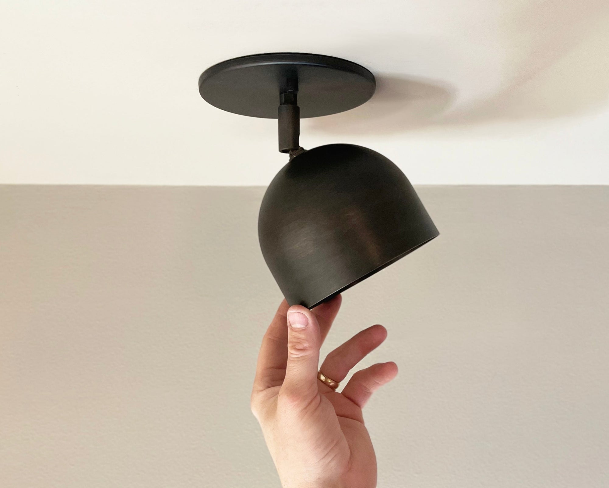 Designed and handmade to order in our Texas studio. Downlight features heavy gauge solid steel construction. Excellent monopoint for flat or vaulted ceilings.