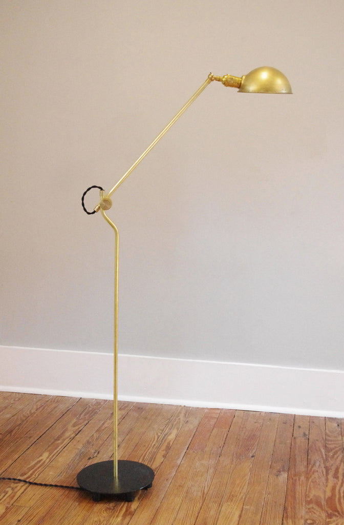 All Long Made Co. lighting is designed and handmade with care in our Texas studio. This floor lamp's shade can angle up and down while the articulating arm can be positioned 360 degrees and locked down with a twist of the sturdy thumb knobs.