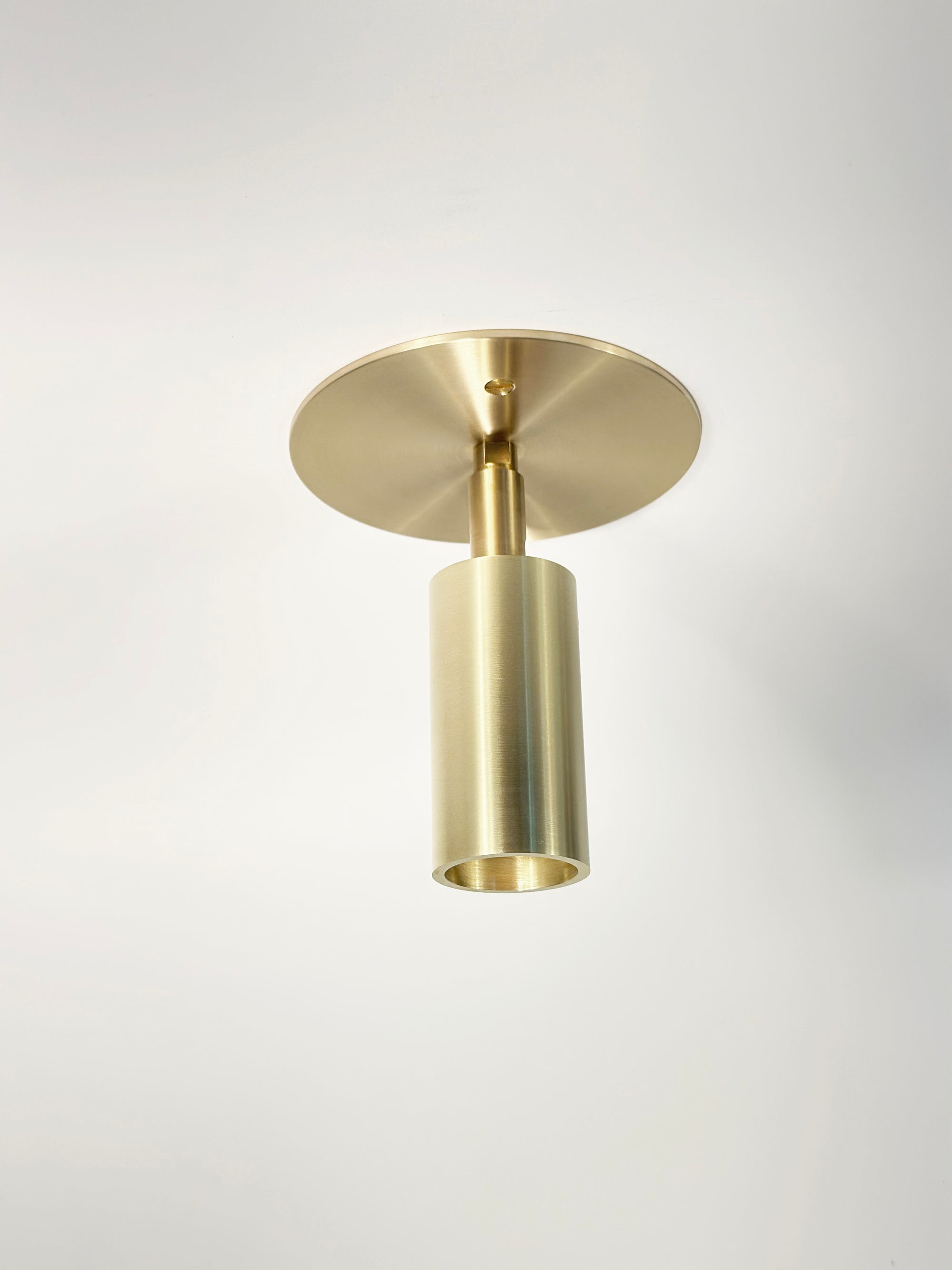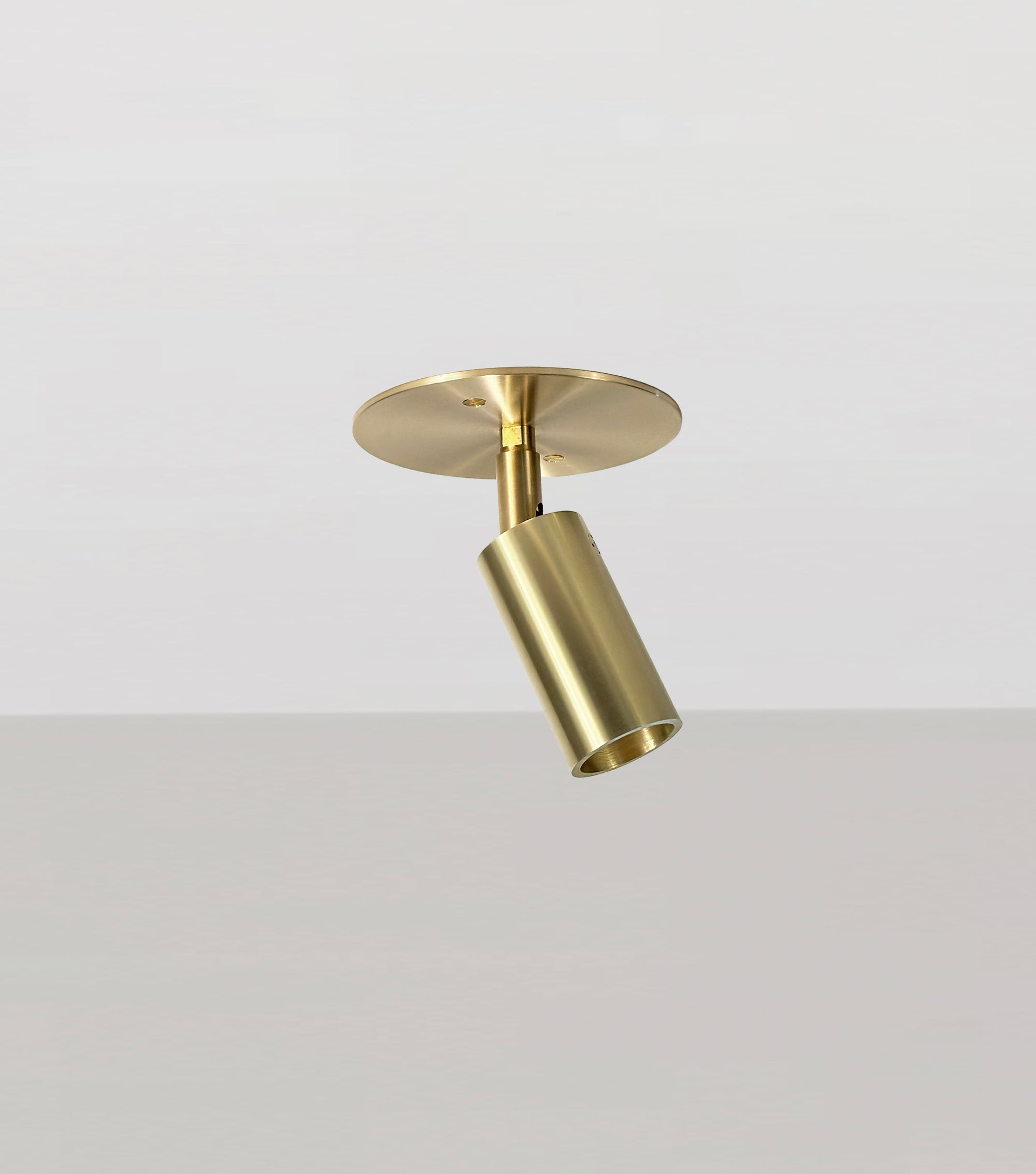 Designed and handmade to order in our Texas studio. Featuring a petite ultra-thick inset cylinder head and a low-profile slab backplate with concealed inset mounting hardware, this monopoint embodies minimalist elegance. It serves as a premium alternative to traditional recessed can or track lighting, delivering adaptable general and task lighting suitable for both residential and commercial environments.