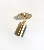 Designed and handmade to order in our Texas studio. Features heavy gauge solid brass construction. The classic mid-century shaped spotlight head adjust to true vertical and horizontal positions and turns 330 degrees on axis. Excellent directional ceiling downlight for flat or vaulted ceilings, this fixture is a great alternative to recessed can lights and perfect for providing general or task lighting throughout any home or business.
