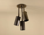 Designed and handmade to order in our Texas studio. Features heavy gauge solid brass construction. Each spot head adjust to true vertical and horizontal positions and turn 330 degrees on axis. Excellent alternative to track lighting and recessed can lights. This directional ceiling spot is ideal for accent, task or general lighting for flat or vaulted ceilings.