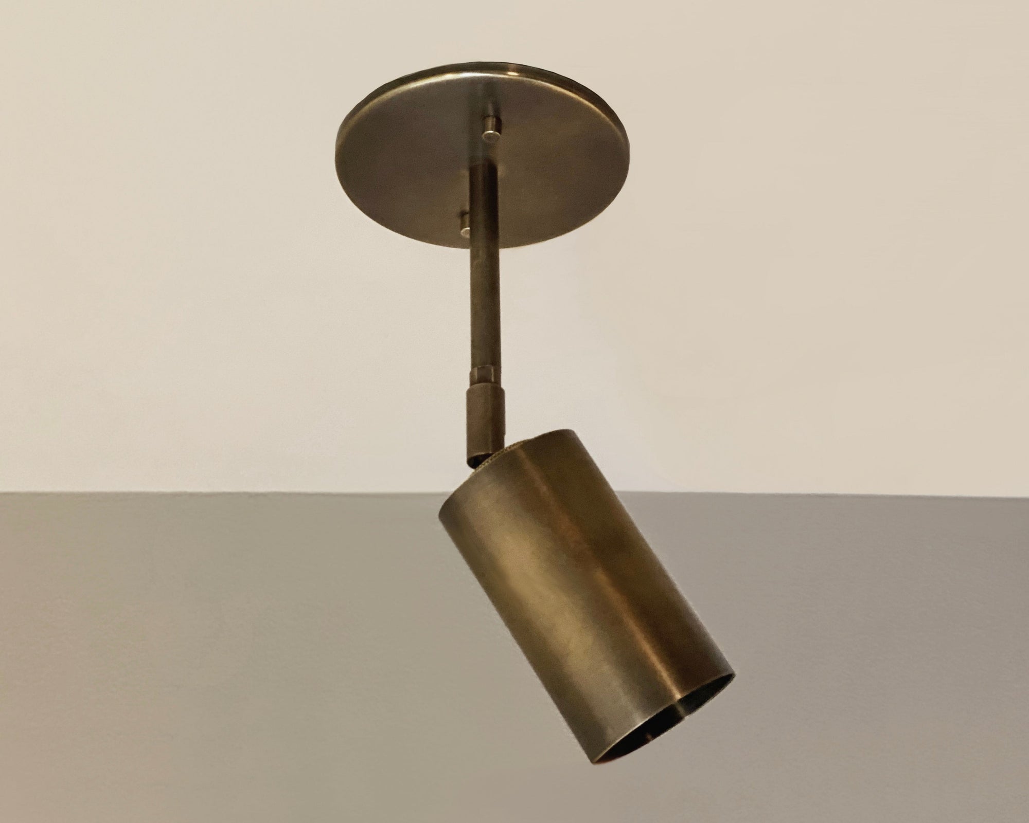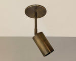 Designed and handmade to order in our Texas studio. Features heavy gauge solid brass construction. Shade head adjust to true vertical and horizontal positions and turns 330 degrees on axis. This directional ceiling downlight is perfect for both flat and vaulted ceilings. It provides ideal lighting for tasks or general illumination, making it a great choice for home or business.