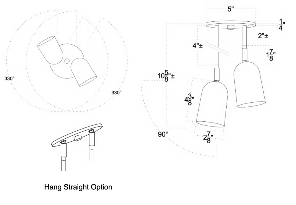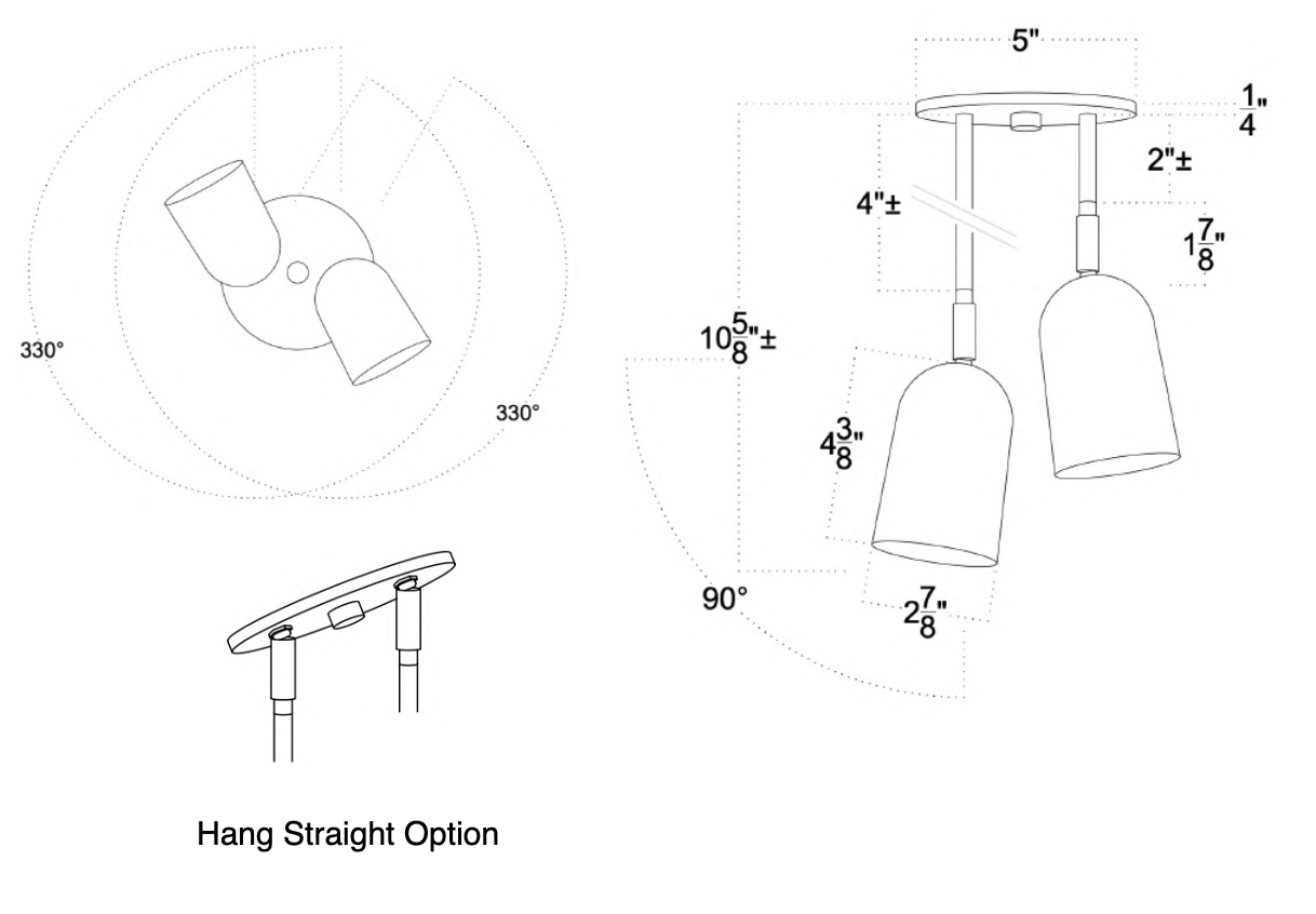 Hang Straight: Additional swivel at backplate end for use on vaulted ceilings. This option allows for the drop rods to hang vertically on a slanted ceiling. Each drop rod will get its own hang straight. Adds 1 7/8” to tip-to-tip length.