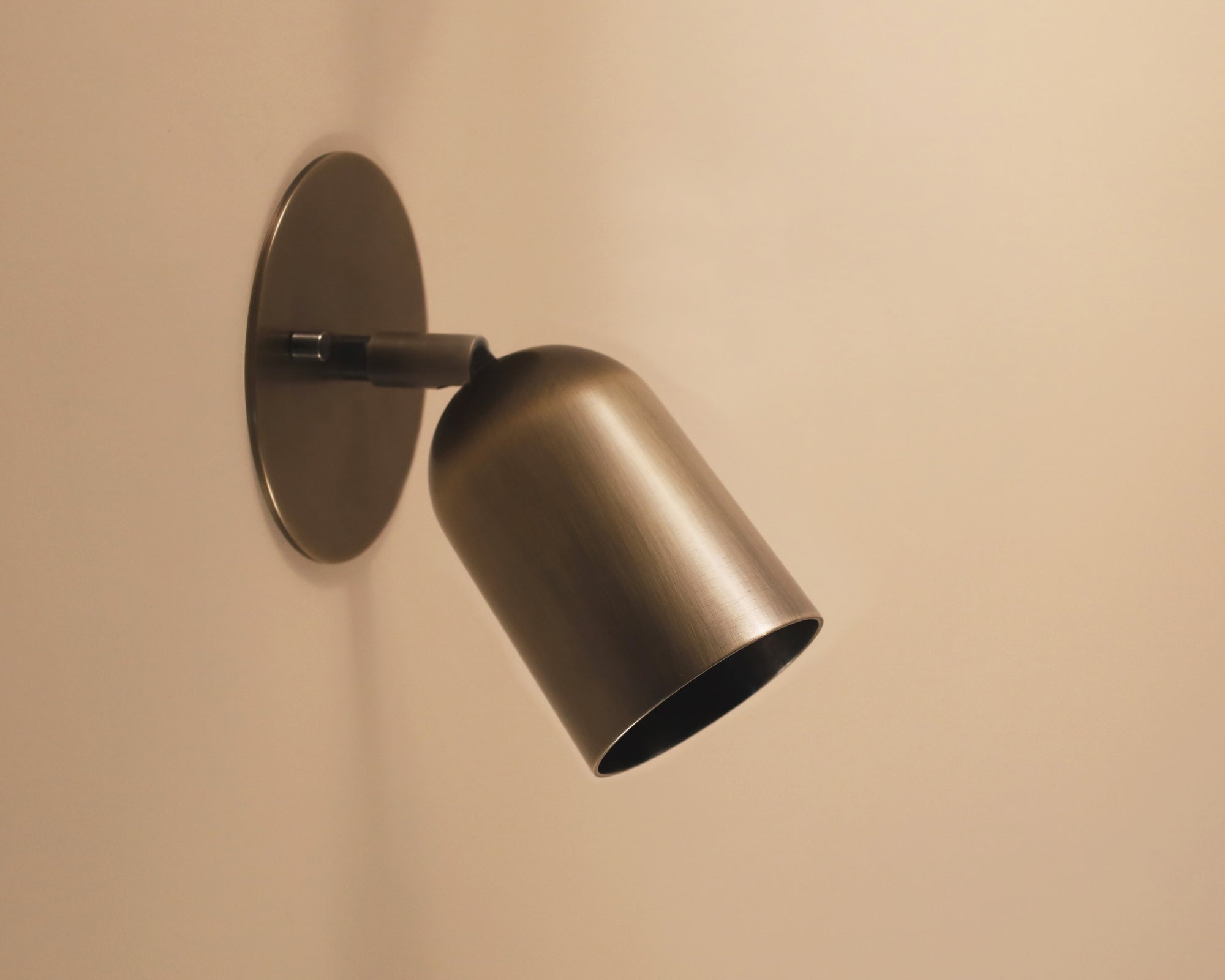 Designed and handmade to order in our Texas studio. Features heavy gauge solid brass construction. Shade head adjust to true vertical and horizontal positions and turns 330 degrees on axis. Perfect for bedside or chair reading. It provides ideal lighting for tasks or general illumination, making it a great choice for home or business.