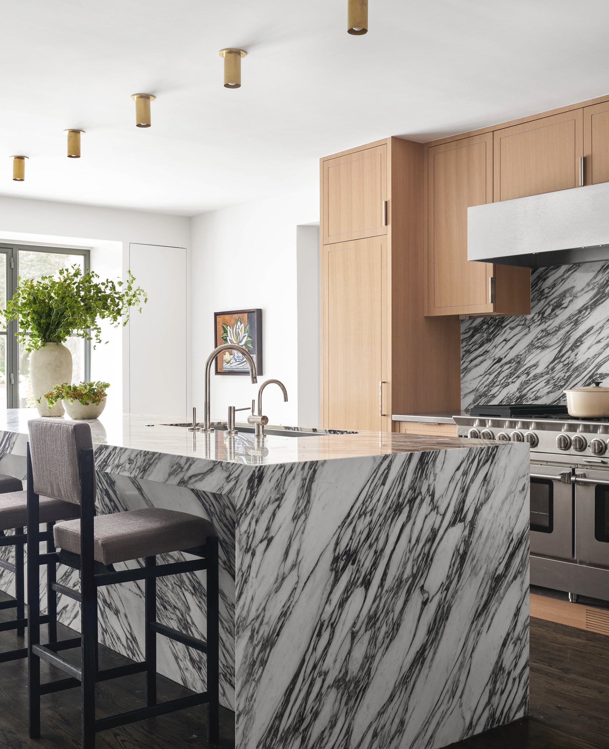 Kitchen Photo w/ Black Oxidized Brass Highland Flush Spots as seen in Architectural Digest - Jenna Barton Interiors. Photo by Chase Daniels.