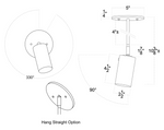 Hang Straight (2nd to last image): Additional swivel at backplate end for use on vaulted ceilings. This option allows for the drop rod to hang vertically on a slanted ceiling. Adds 1 7/8” to tip-to-tip length.
