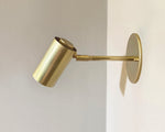 Designed and handmade to order in our Texas studio. Features heavy gauge solid brass construction. Shade head adjust to true vertical and horizontal positions and turns 330 degrees on axis. Excellent directional wall reading task light.