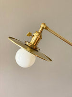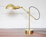 All Long Made Co. lighting is designed and handmade with care in our Texas studio. This table lamp's shade can angle up and down while the articulating arm can be positioned 360 degrees and locked down with a twist of the sturdy thumb knobs.